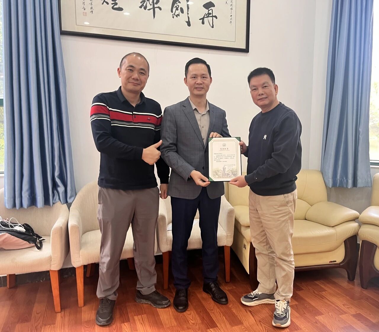 图3 林俊洪书记为钟金来校友颁发“校友午间会”荣誉证书