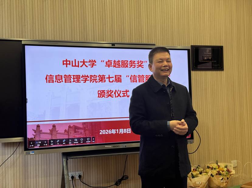 2026年1月8日,我院在学院楼A104举行成人色情小说 “卓越服务奖”及学院“信管服务奖”颁奖仪式。林俊洪荣获成人色情小说 “卓越服务奖”,周旖副教授和张海亚老师荣获我院“信管服务奖”。仪式由吴曼瑜副书记主持。